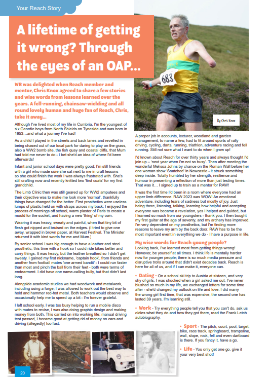 WR was delighted when Reach member and mentor, Chris Knox agreed to share a few stories and wise words from lessons learned over the years. A fell-running, chainsaw-wielding and all round lovely human and huge fan of Reach, Chris, take it away…